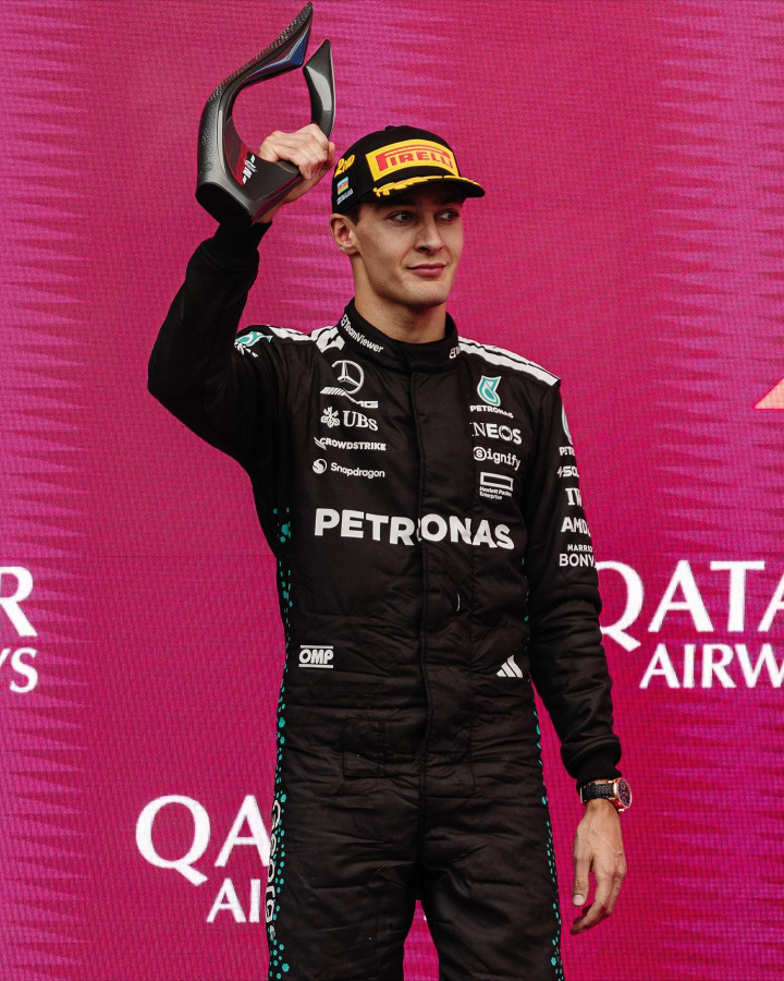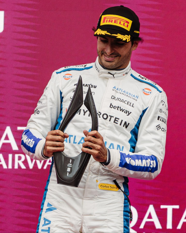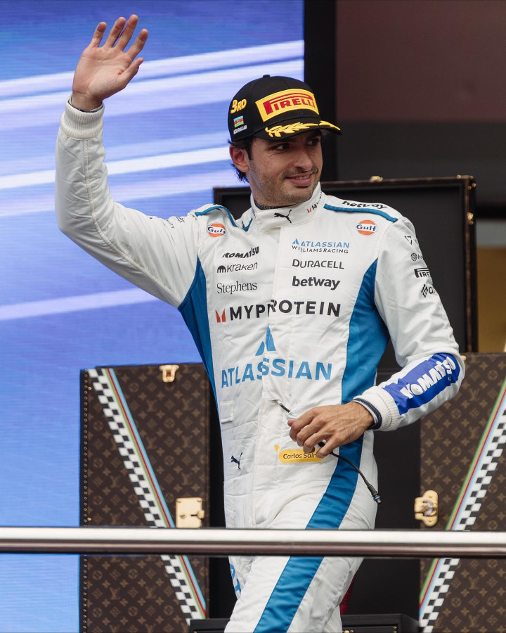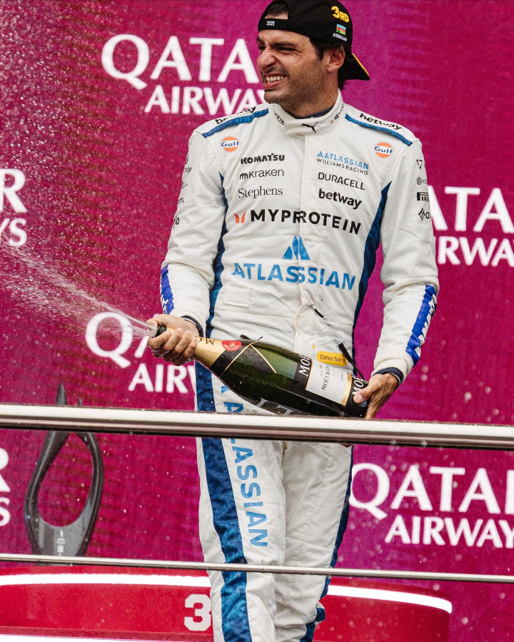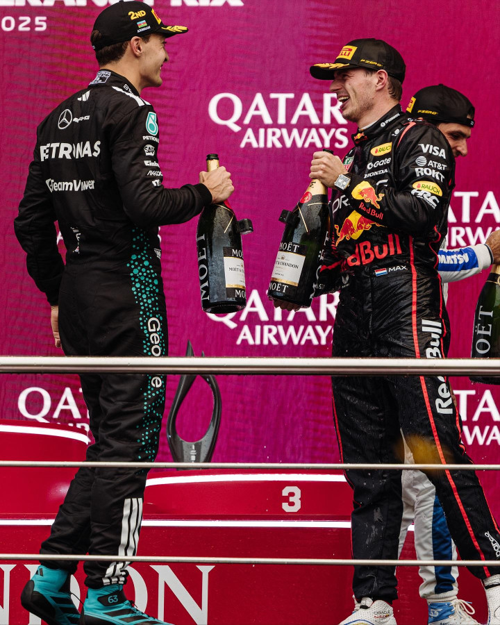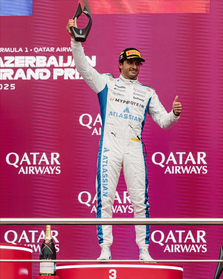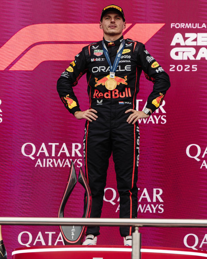 记者F1ins发推特报道,这个领奖台!我们见证了2025赛季又一个全新的前三名组合,场面令人激动#F1#Formula1#AzerbaijanGP@maxverstappen1@georgerussell63@carlossainz55
