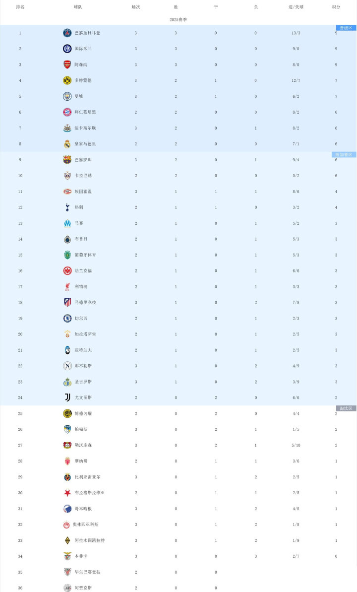 欧冠第3轮率先结束了9场比赛的较量,这9场比赛仅仅出现了1场0-0的闷平,其余的8场比赛都有进球:共计打进了43球,而且还出现了三场大比分的惨案,包括了意甲第3那不勒斯均遭遇了惨败!具体到个人球员方面,哈兰德又进球了、也是追平了C罗的纪录。