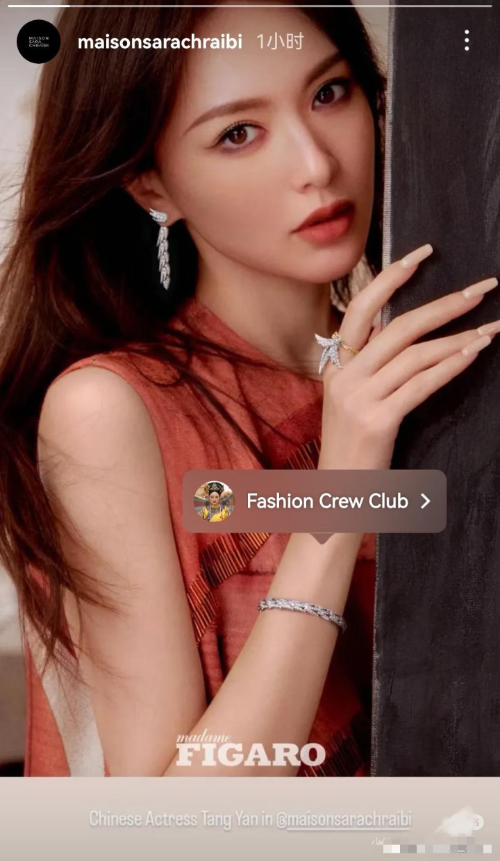 两大高定品牌Juana Martin和Maison Sara Chraibi,于昨日一起转发了唐嫣的费加罗杂志高定造型。