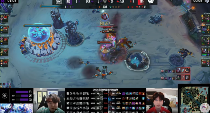 LNG这Croco和BullDog加上一个老教练Edgar的组合确实不怎么样,WE虽然换了双人组,但新人韩援ADC和被TT雪藏了一段时间终于回到职业赛场的辅助Yaoyao表现还不错。WE应该还是有守门员水平的,而这LNG是一眼看到头的阵容了。