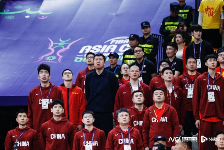 今年2月,男篮国家队在深圳参加亚预赛,还在疗伤中的崔永熙(前排左二)与队友一起在看台为国家队助威。南都N视频记者黎湛均摄