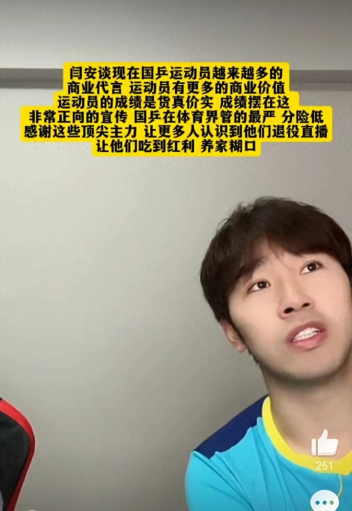 近期,前乒乓球国手闫安在近日直播中坦言:“正是孙颖莎、王楚钦等主力的明星效应,让包括自己在内的众多退役选手通过直播带货等领域‘吃到红利’,得以养家糊口!”这位2013年瑞典公开赛男单冠军、2021年退出国家队的球员道出了一个现象,现役顶尖运动员的高人气不仅提升了项目影响力,也为退役队友创造了更多发展机会